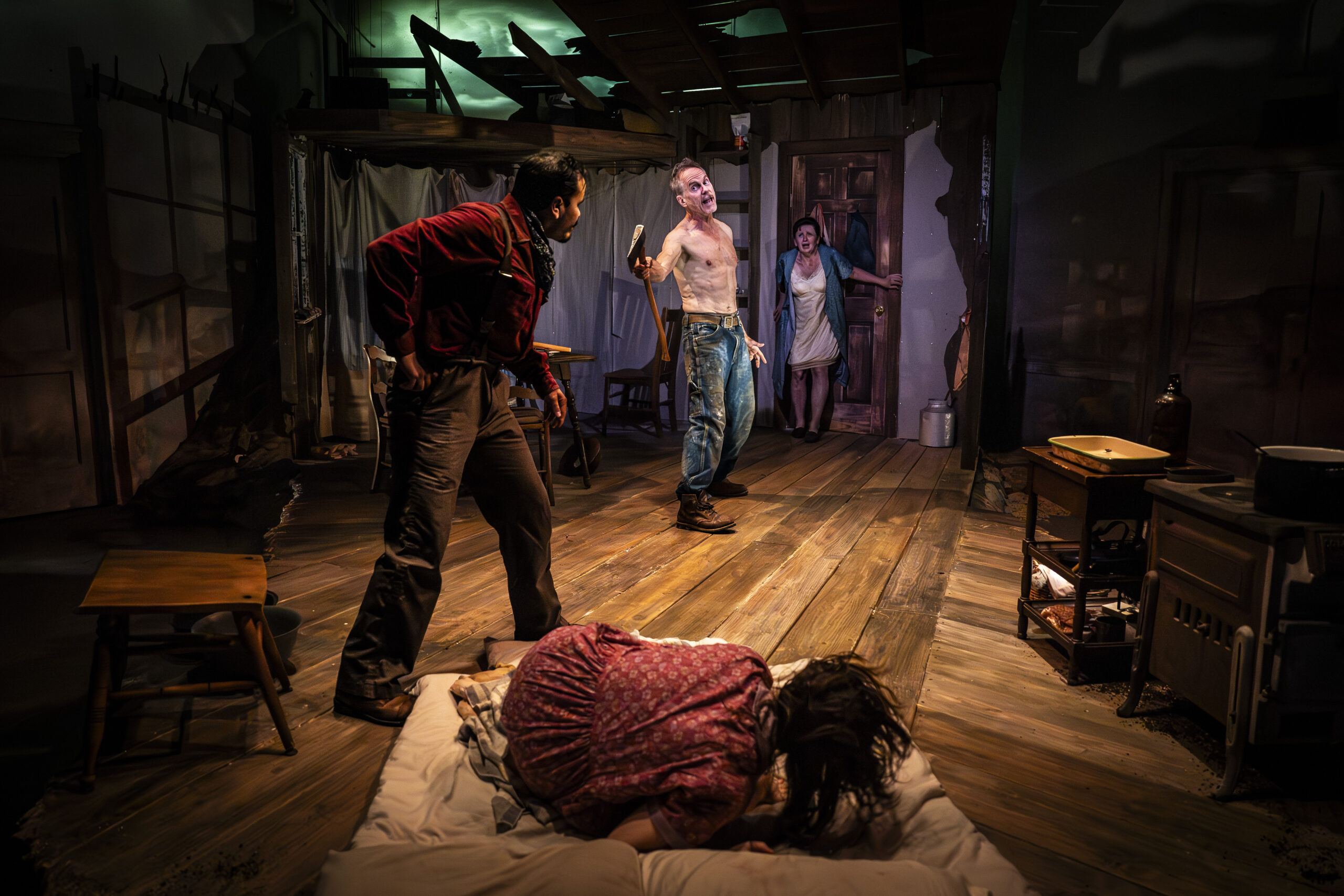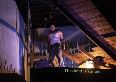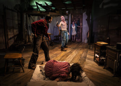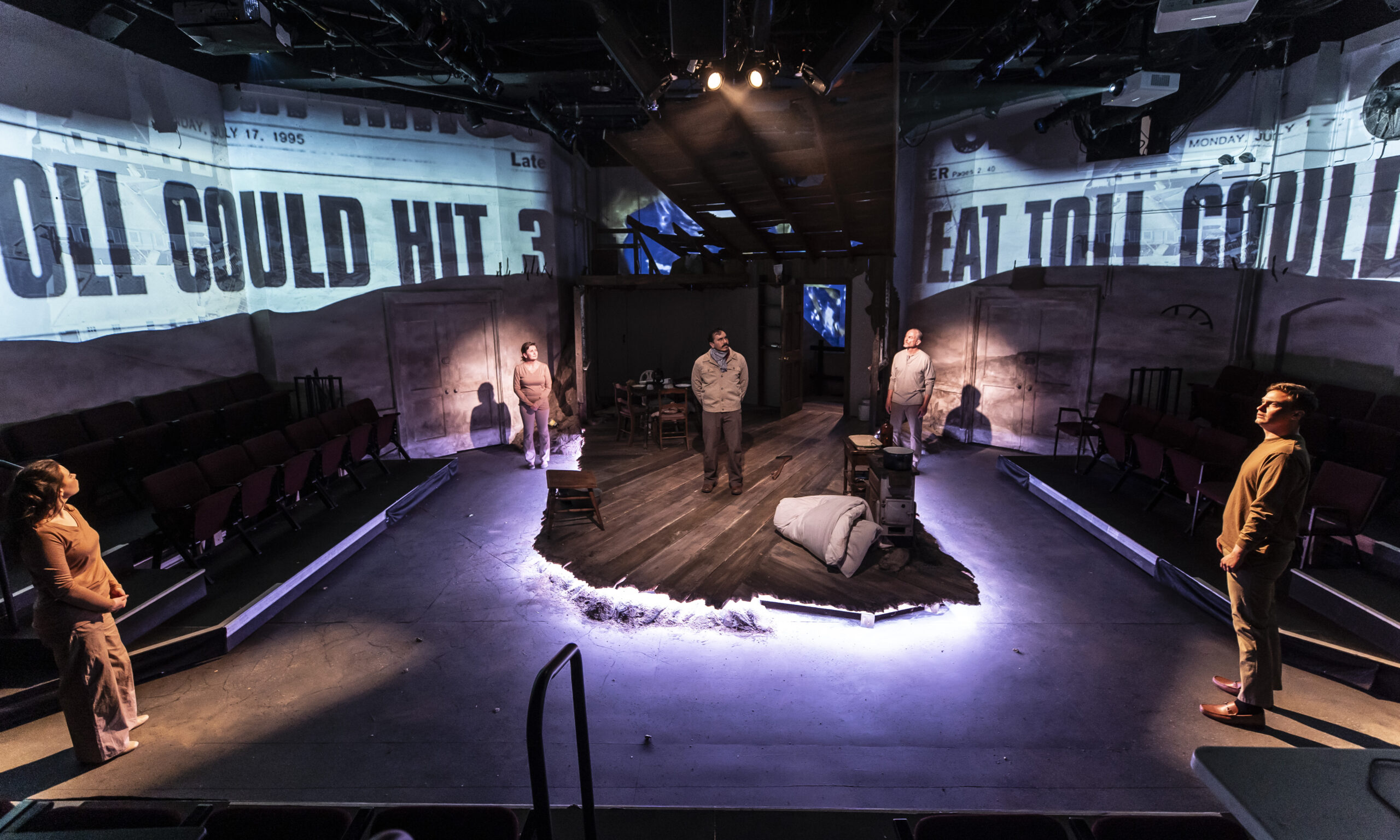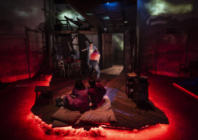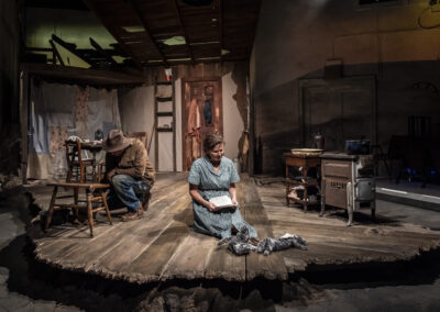 BLACK SUNDAY by Delores Diaz Timeline Theatre Spring 2024 dir Helen Young Lights – Conchita Avitia Projections – Tony Churchill Costumes – Christine Pascual Sound – Forrest Gregor photos by Liz Lauren