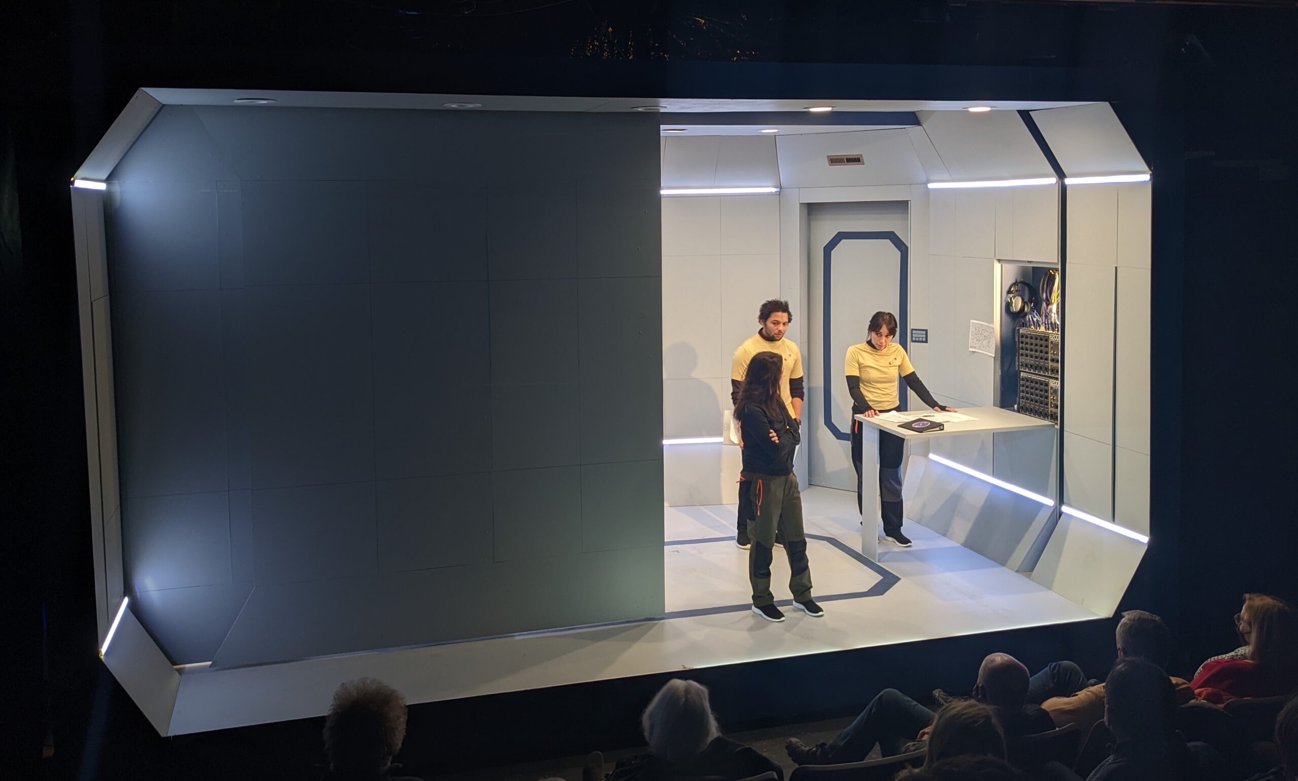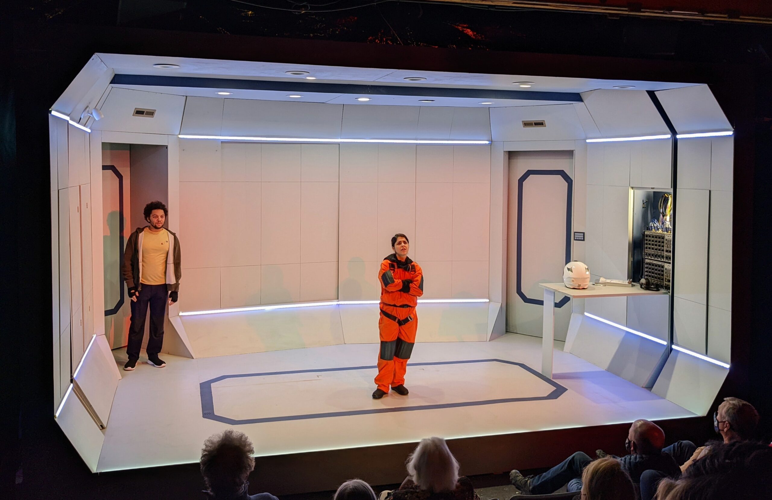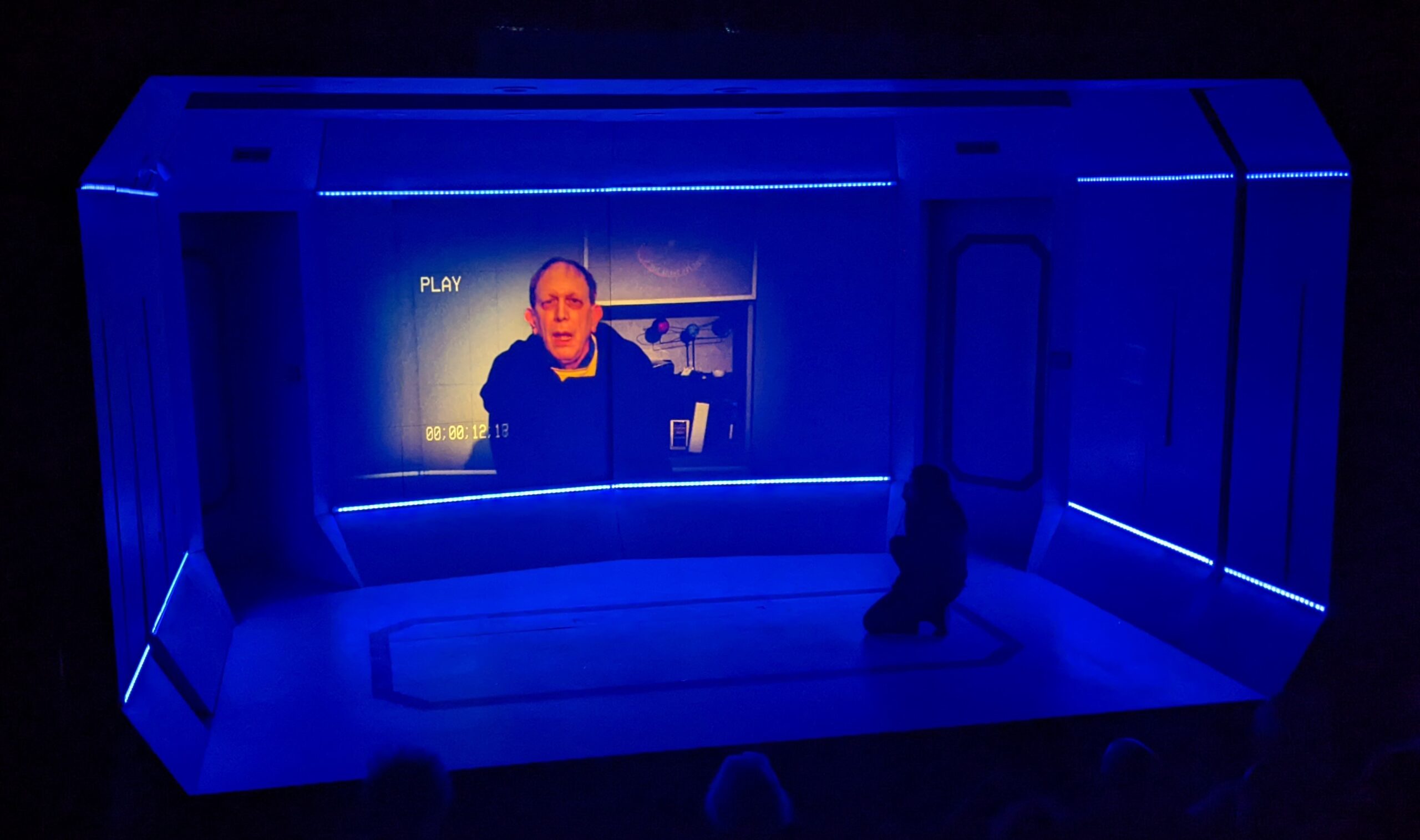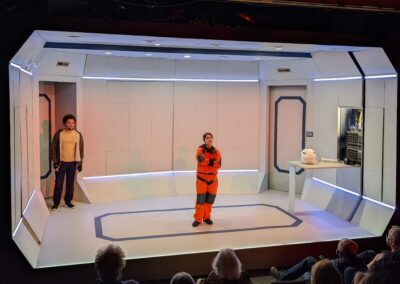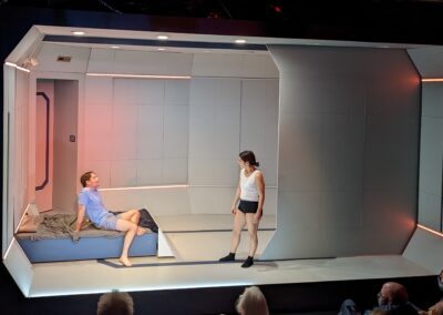 SOLARIS by David Grieg Griffin Theatre Summer 2022 dir Scott Weinstein Lights – Brandon Wardell Projections – Yeaji Kim Costumes – Izum Inaba Sound – Eric Backus photos by Brandon Wardell